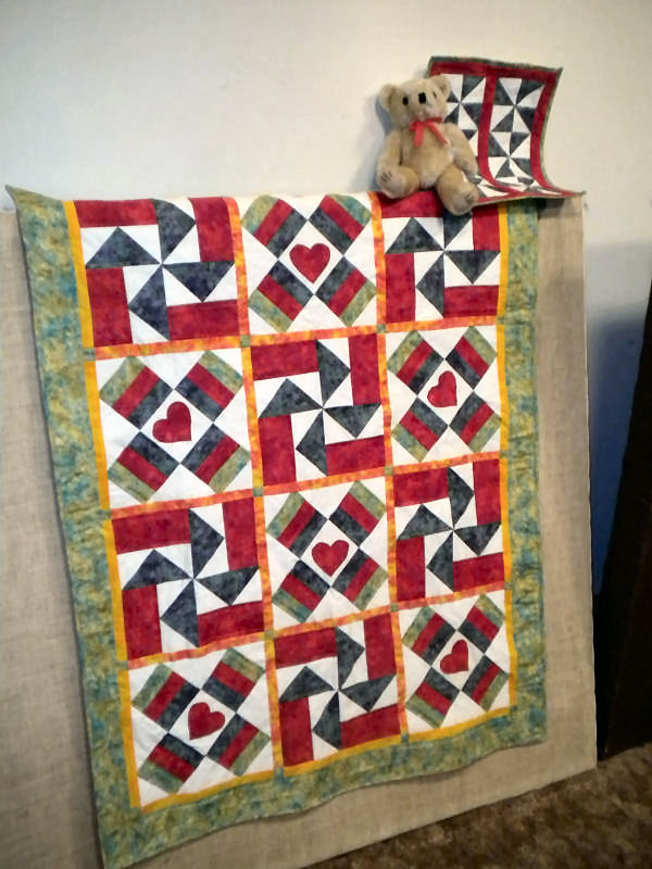 ![]() Saving the fabric scraps from Bermuda Bound, I was able to have enough to make the couple's first child's baby quilt. Baby Love (and Teddy with his own quilt) is also in Austin, TX.